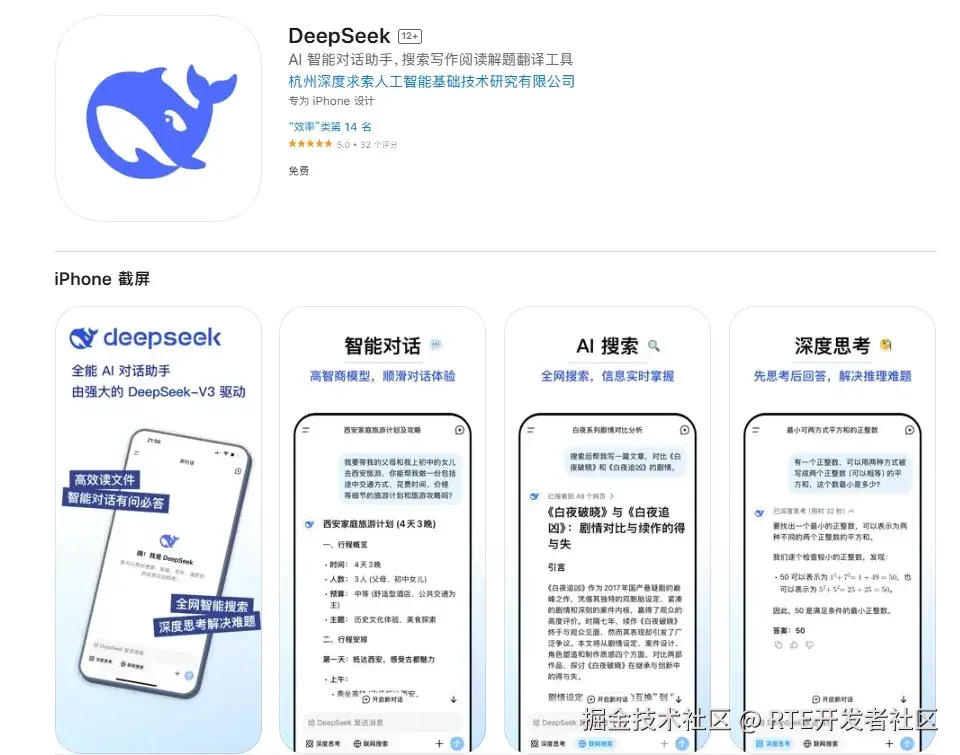 需要注意的是,假冒的 APP 比较多,下载的时候要关注下开发者是杭州深度求索才是官方产品。(@AIbase 基地)
