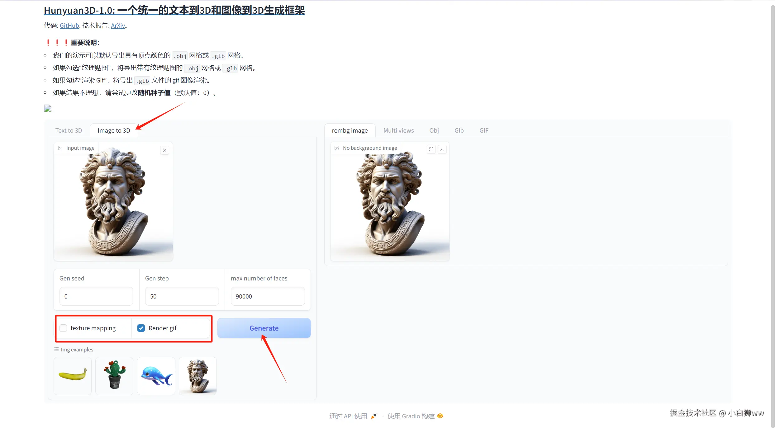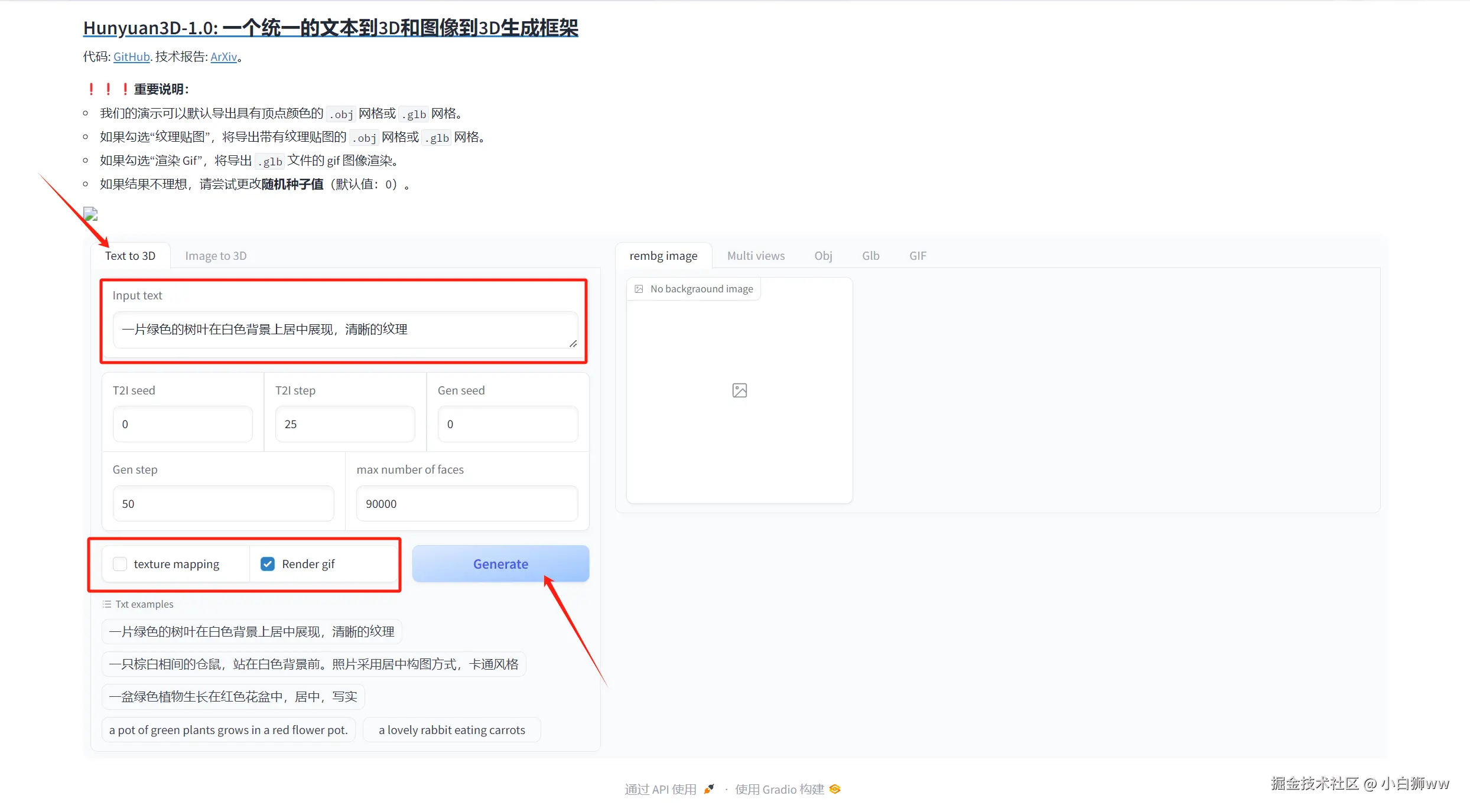 本教程是 Hunyuan3D-1.0 轻量版,包含 2 个功能:「图像生成 3D (image to 3D)」和「文本转 3D (text to 3D)」