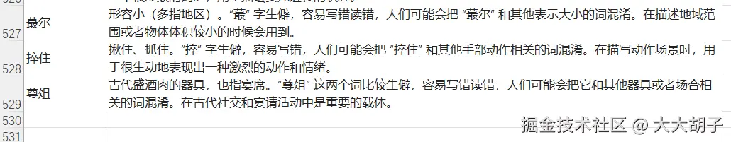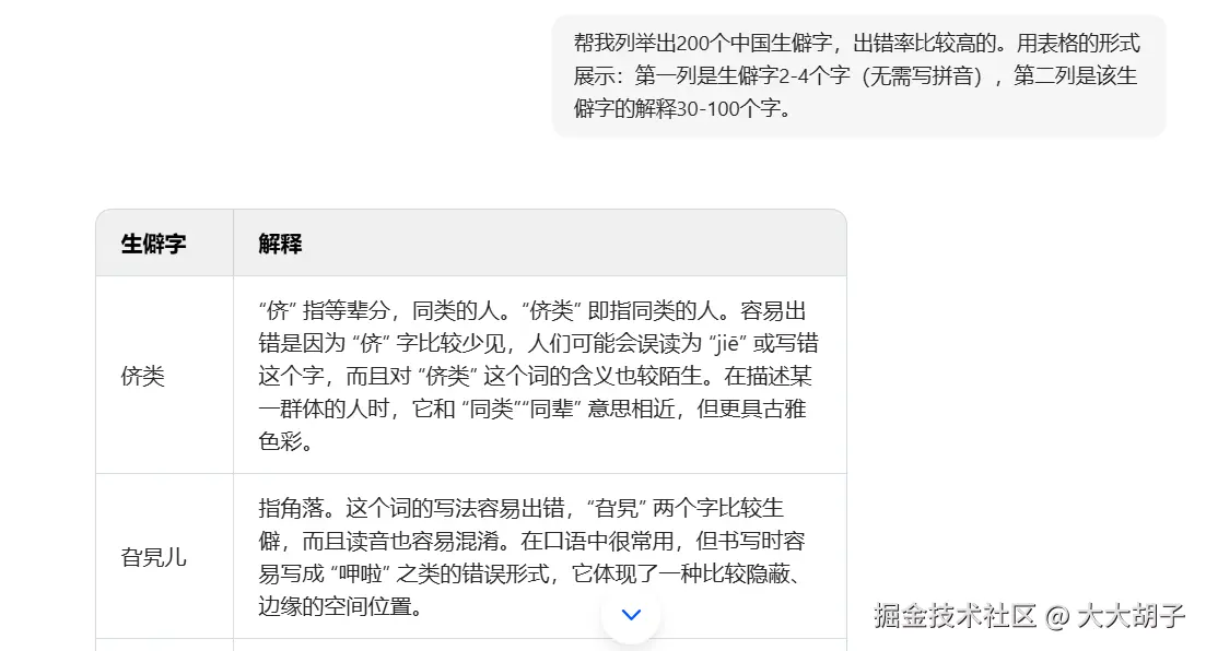 二、通过AI批量生产生僻字和解释。