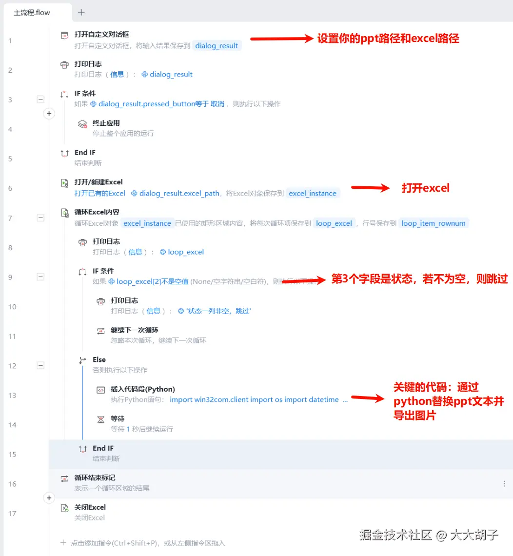 可以说,这一步是批量化最关键的步骤,我们选用的工具是影刀,自动读取excel,并替换ppt中的生僻字并导出图片。