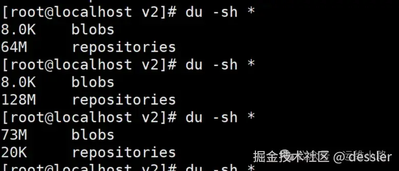 上图上传镜像的过程中,数据在_upload目录,上传完成以后数据到了blobs目录。