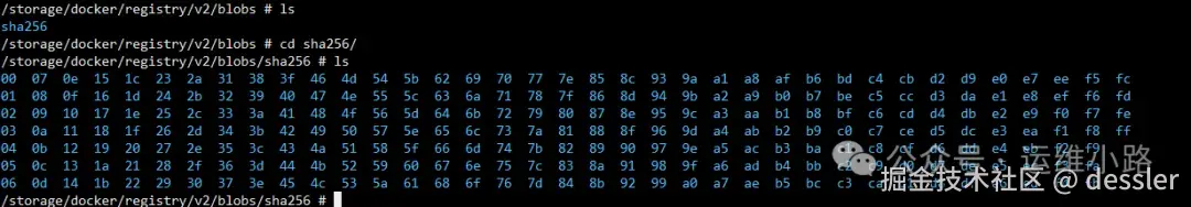 blobs :用于实际存储镜像文件,实际hash打散的二进制文件。当然下图是存在 很多镜像才会出现的这么多目录。