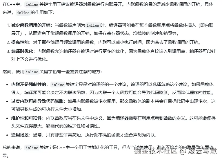 - inline关键字的作用是什么,大多数人的回答肯定是内联优化。以下是一个大模型的回答。