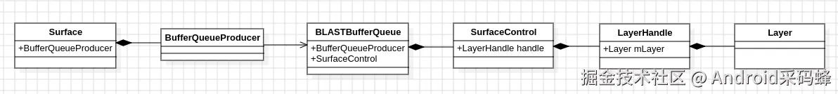 但需要注意的是,SurfaceControl并非跟Layer是一一对应关系,可以存在多个SurfaceControl对应一个Layer,这取决与SurfaceControl的创建方式。