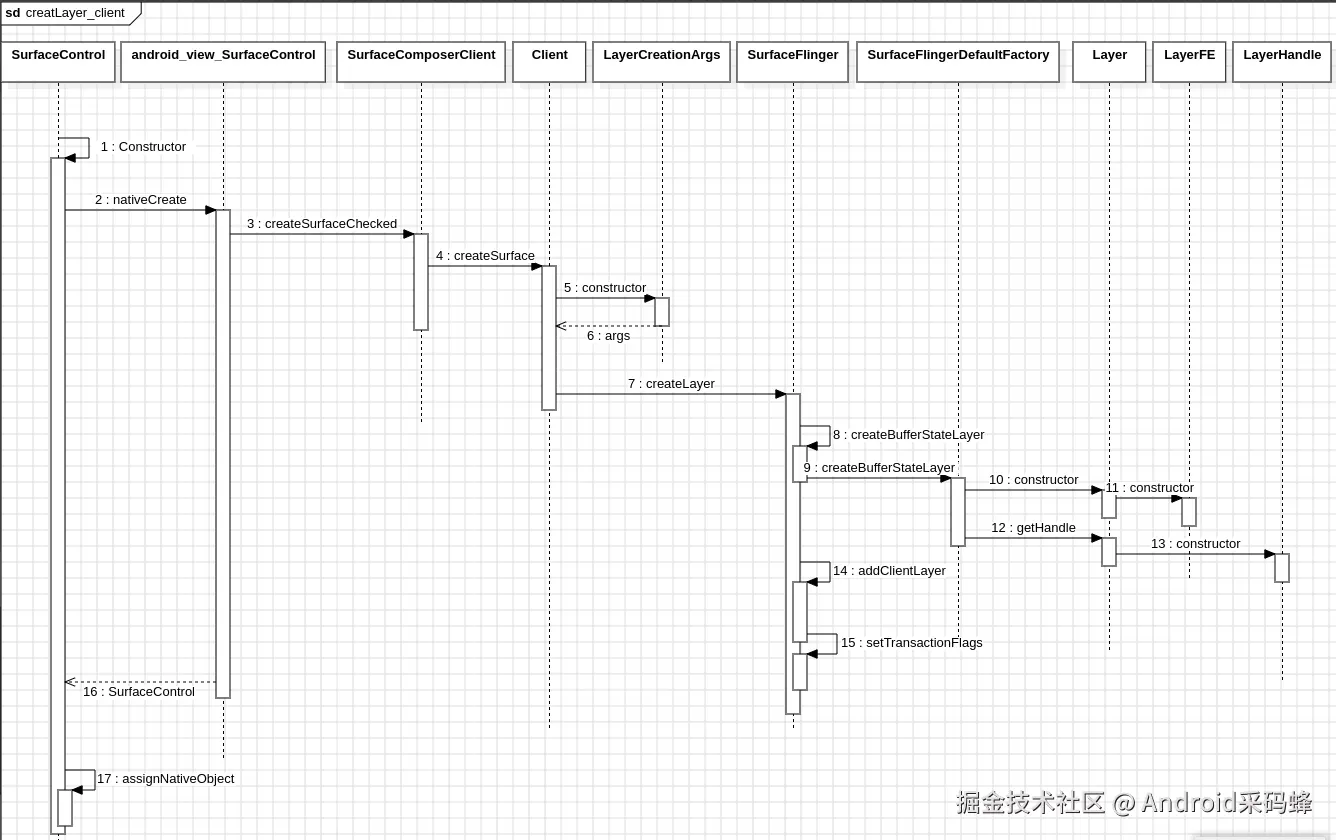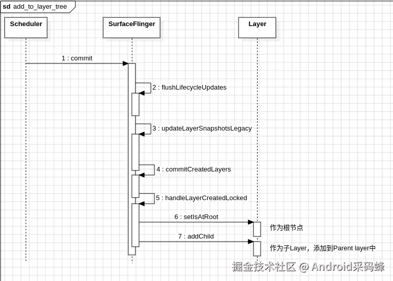 SF::addClientLayer()执行结束后返回); - 收到VSYNC信号后对创建Layer进行LayerTree的设置,在surfaceflinger主线程完成。