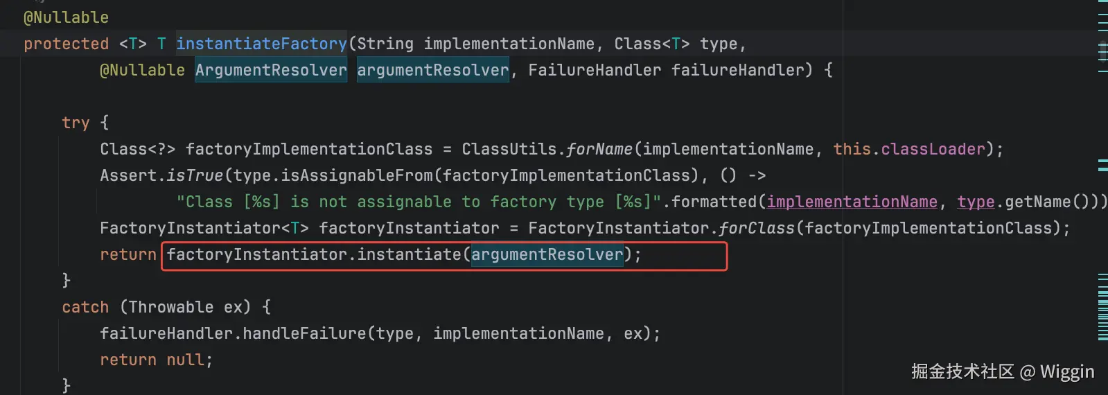 通过注释我们大概能知道,这东西跟解析构造参数相关。但是当你点进去看的时候,你会发现一眼看上去,ArgumentResolver里的方法调用来调用去,加上lambda表示式,理解起来有点困难。