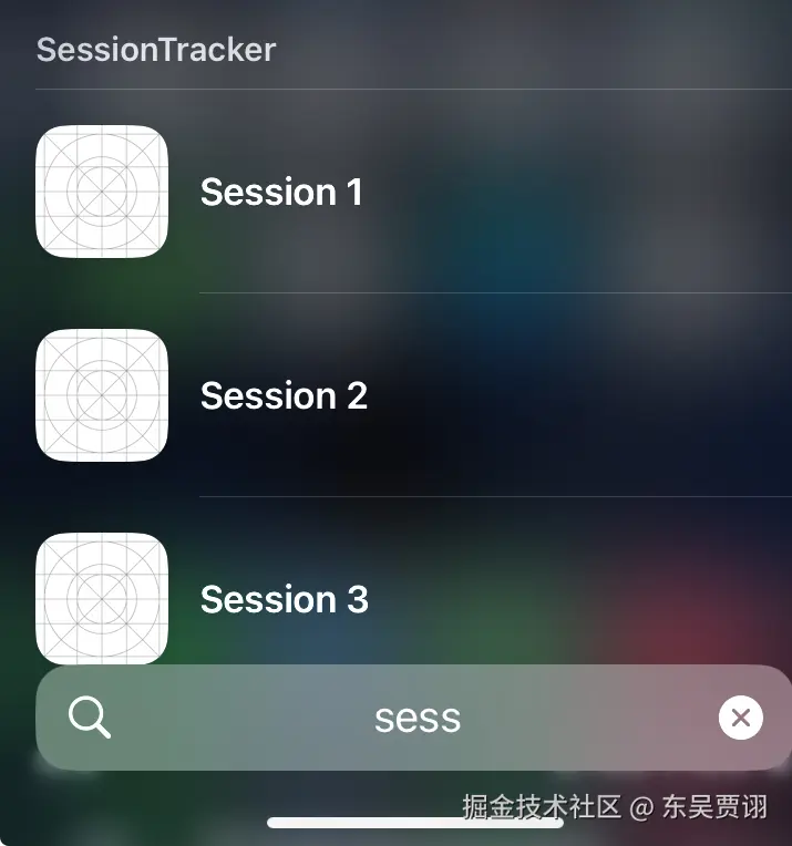 步骤1:运行上面的代码,然后进入手机首页,并向下拖动以显示搜索对话框。输入Session搜索, 只会展示APP