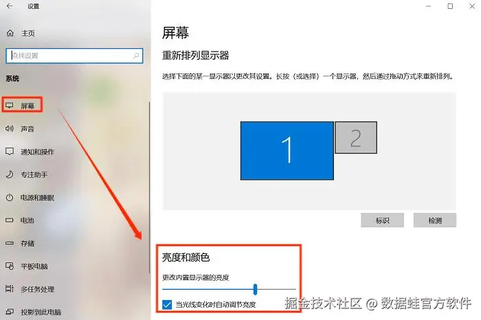 步骤2:在“设置”窗口中,找到并点击“系统”图标,然后选择左侧的“显示”选项卡。右侧有个“更改内置显示器的亮度”选项,下面有个滑块,你只需要拖动它,就能像调节音量一样,精准地控制屏幕的亮度了。