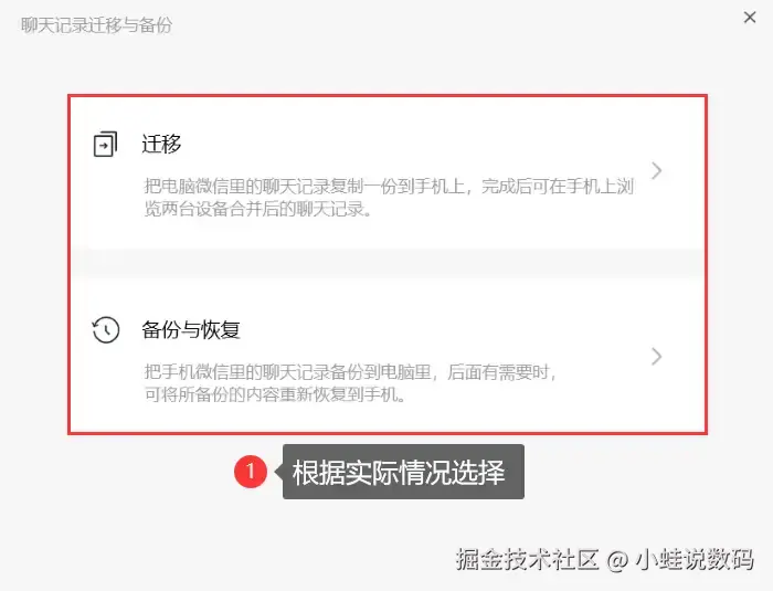 步骤2:在弹出的菜单中,选择 【备份与恢复】 ,选择 【恢复聊天记录至手机】 ,根据提示,在手机上进行确认,即可完成恢复。