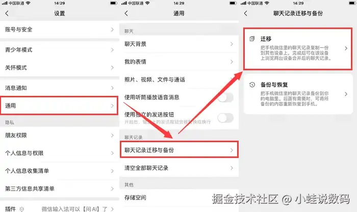 步骤2:在 【通用】 选项中,选择 【聊天记录备份与迁移】 。根据提示,选择 【恢复聊天记录至手机】 并按照指示完成恢复过程。