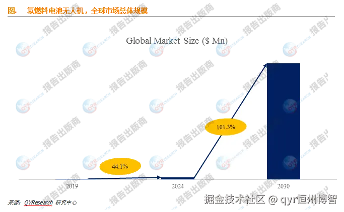 据QYResearch调研团队最新报告“全球氢燃料电池无人机市场报告2024-2030”显示,预计2030年全球氢燃料电池无人机市场规模将达到8.2亿美元,未来几年年复合增长率CAGR为101.3%。