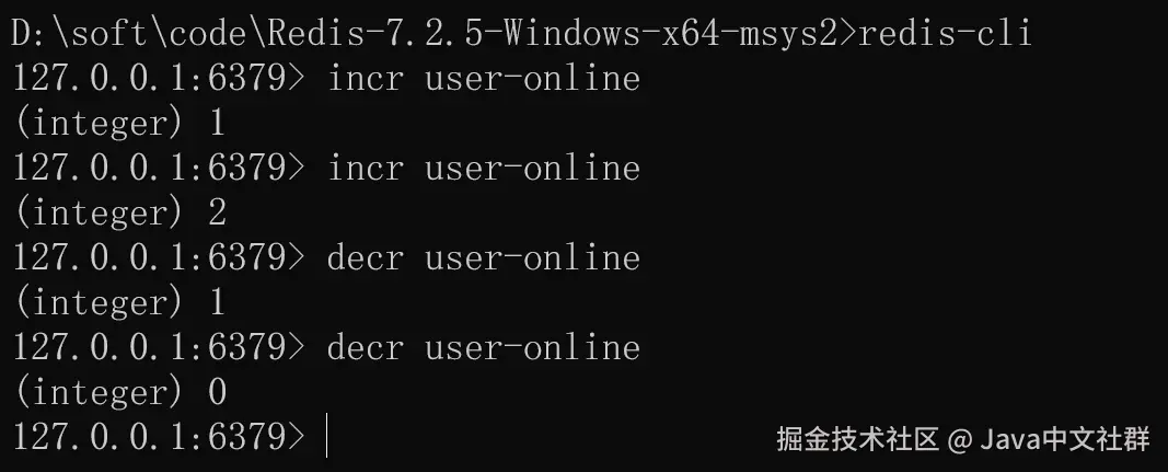 在 Spring Boot 项目中,我们可以使用 RedisTemplate 实现用户的上、下线设置,以及在线个数统计,具体实现代码如下: