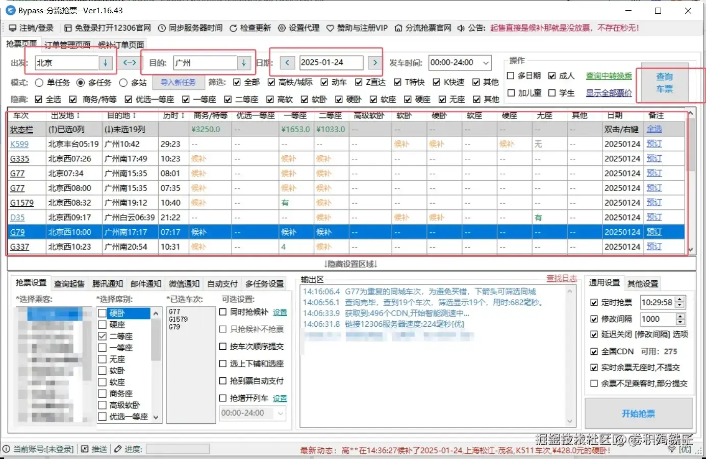 每年春节大家必备的抢票工具Bypass-分流抢票。分流抢票是一款免费无广适用于PC端的自动分流抢票软件。