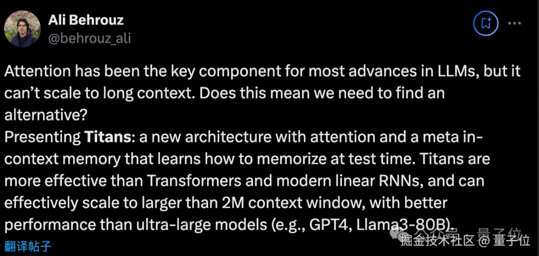 一作 Ali Behrouz 表示: