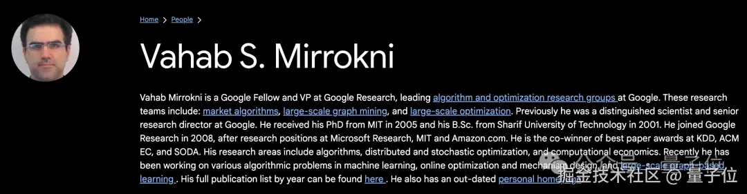 领队的 Vahab Mirrokni 是 Google Fellow 以及 VP。
