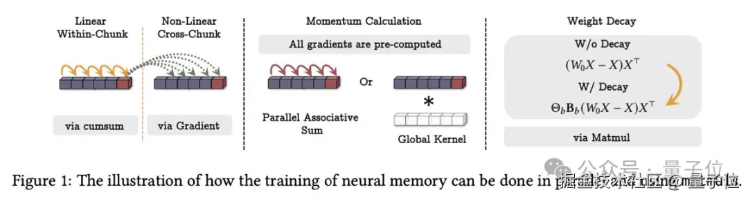引入动量机制和遗忘机制,前者将短期内的惊喜累积起来形成长期记忆,后者可以擦除不再需要的旧记忆,防止记忆溢出。