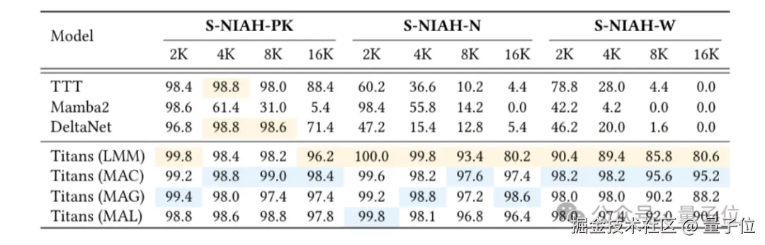 但团队认为,这些通用的测试已经体现不出 Titans 在长文本上的优势。
