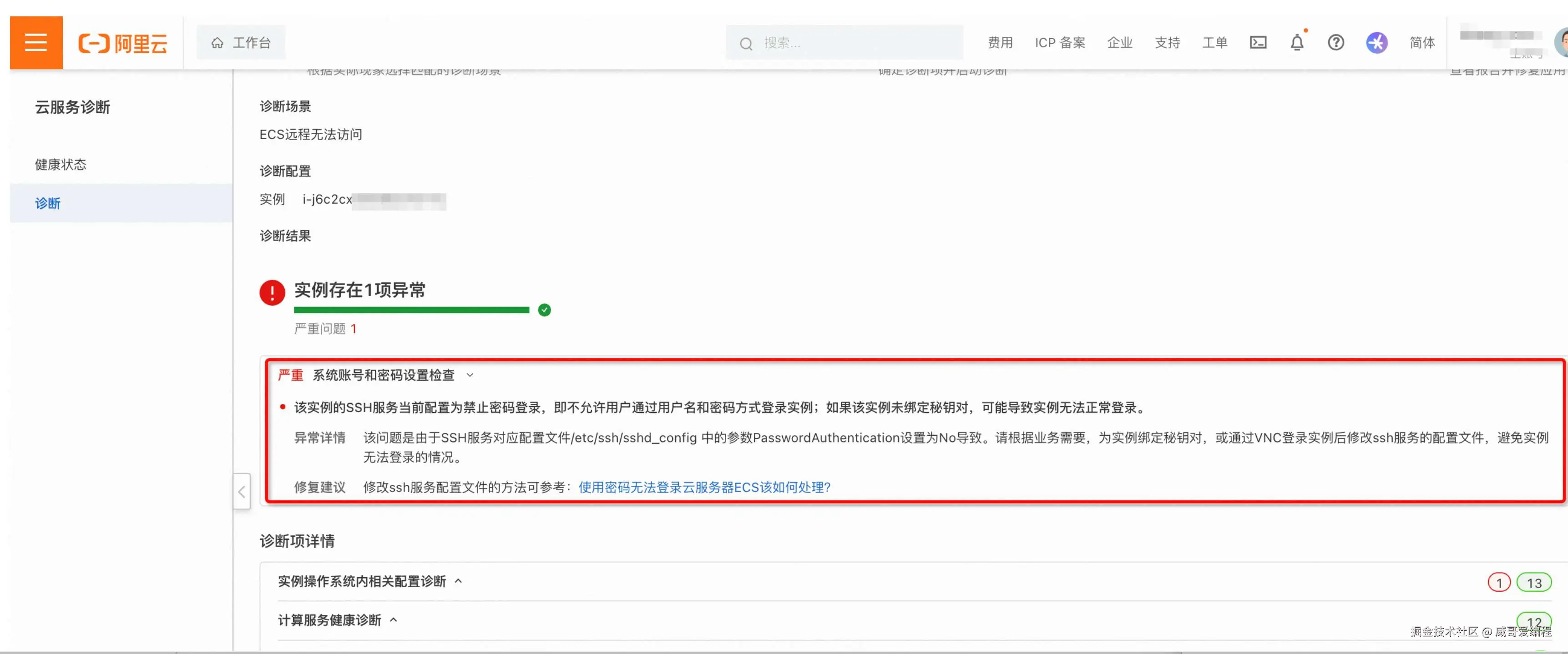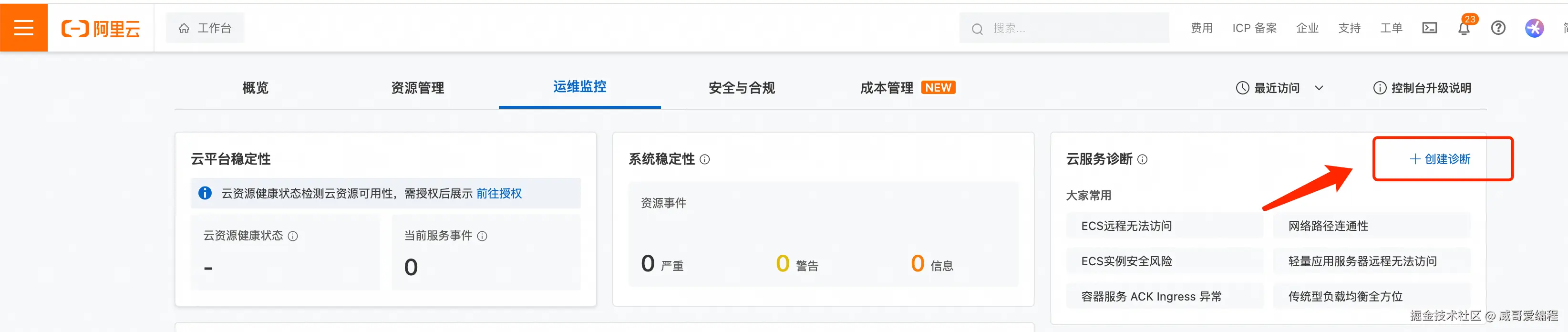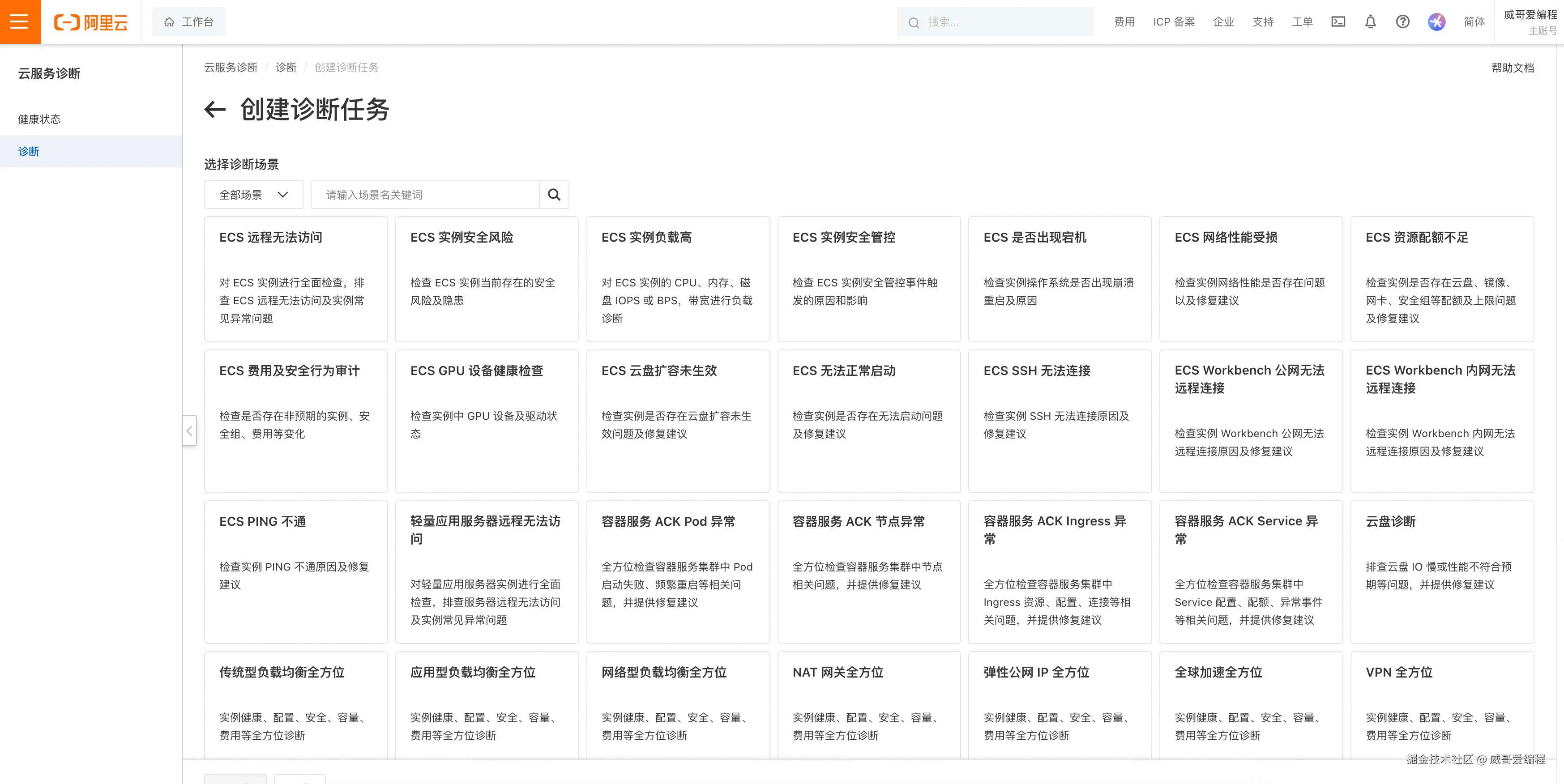 好了,以上就是阿里云服务诊断工具的使用,很简单吧,如果你也正在使用阿里云服务,平台提供的诊断工具可以帮助你排忧解难,快用起来吧。关注威哥爱编程,全栈之路你就行。