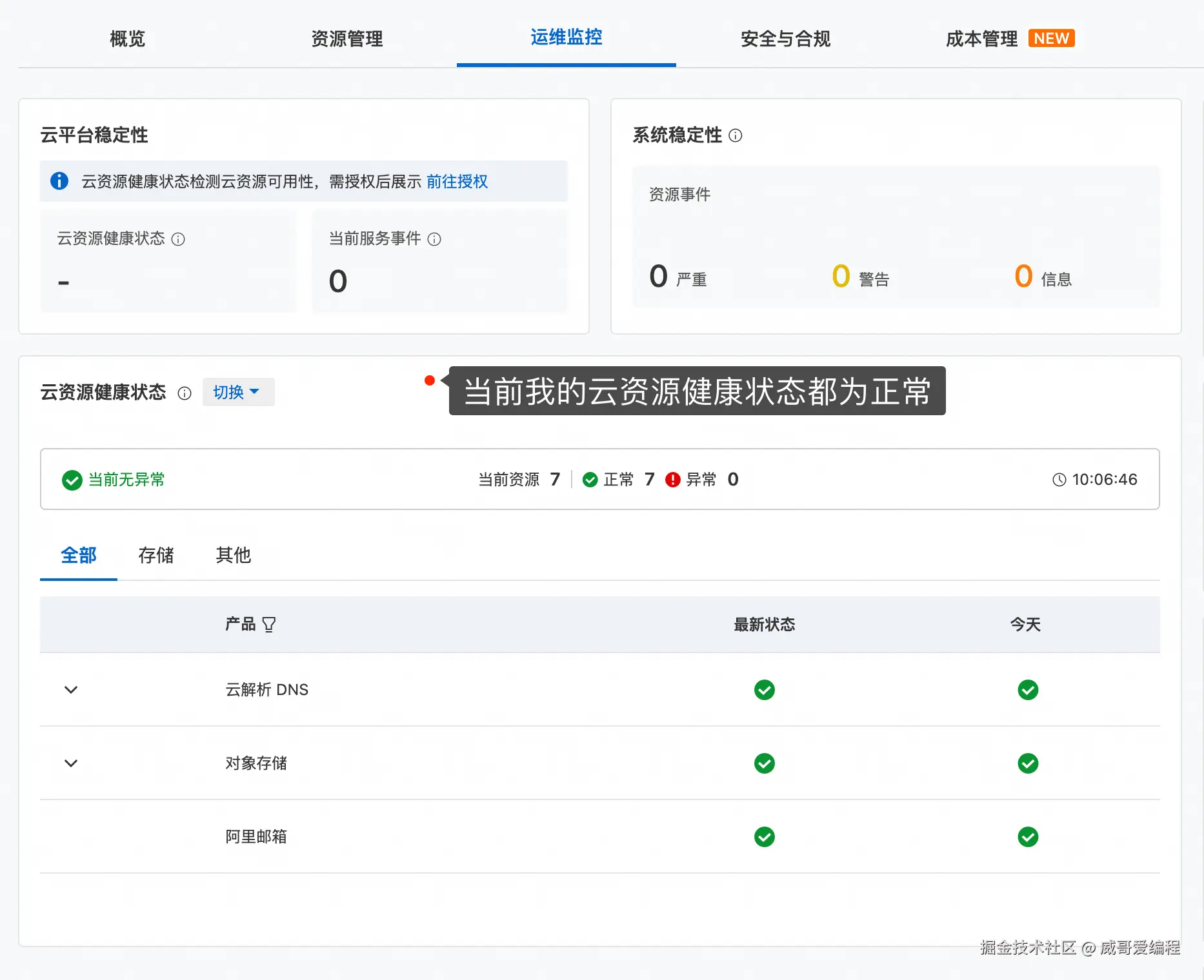 快速定位:通过简洁明了的状态展示,用户能在第一时间知晓云资源是否正常。例如,在一次业务系统卡顿的排查中,用户通过健康状态查看,发现所有云资源均显示正常,从而迅速排除了阿里云云服务层面的问题,将排查方向转向了自身业务代码和第三方服务,大大节省了排查时间。