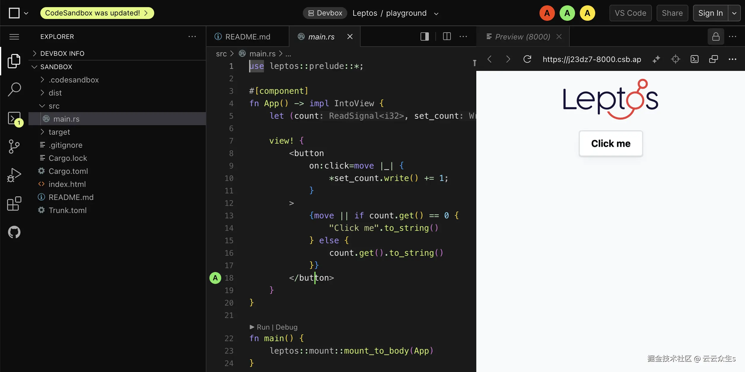 他补充说,正是 WebAssembly 的出现促使他创建了一个 Rust Web 框架。借助 Wasm,他使用 Leptos 的目标是“提供大致与 JavaScript 框架平行的体验,但在 Rust 中”。