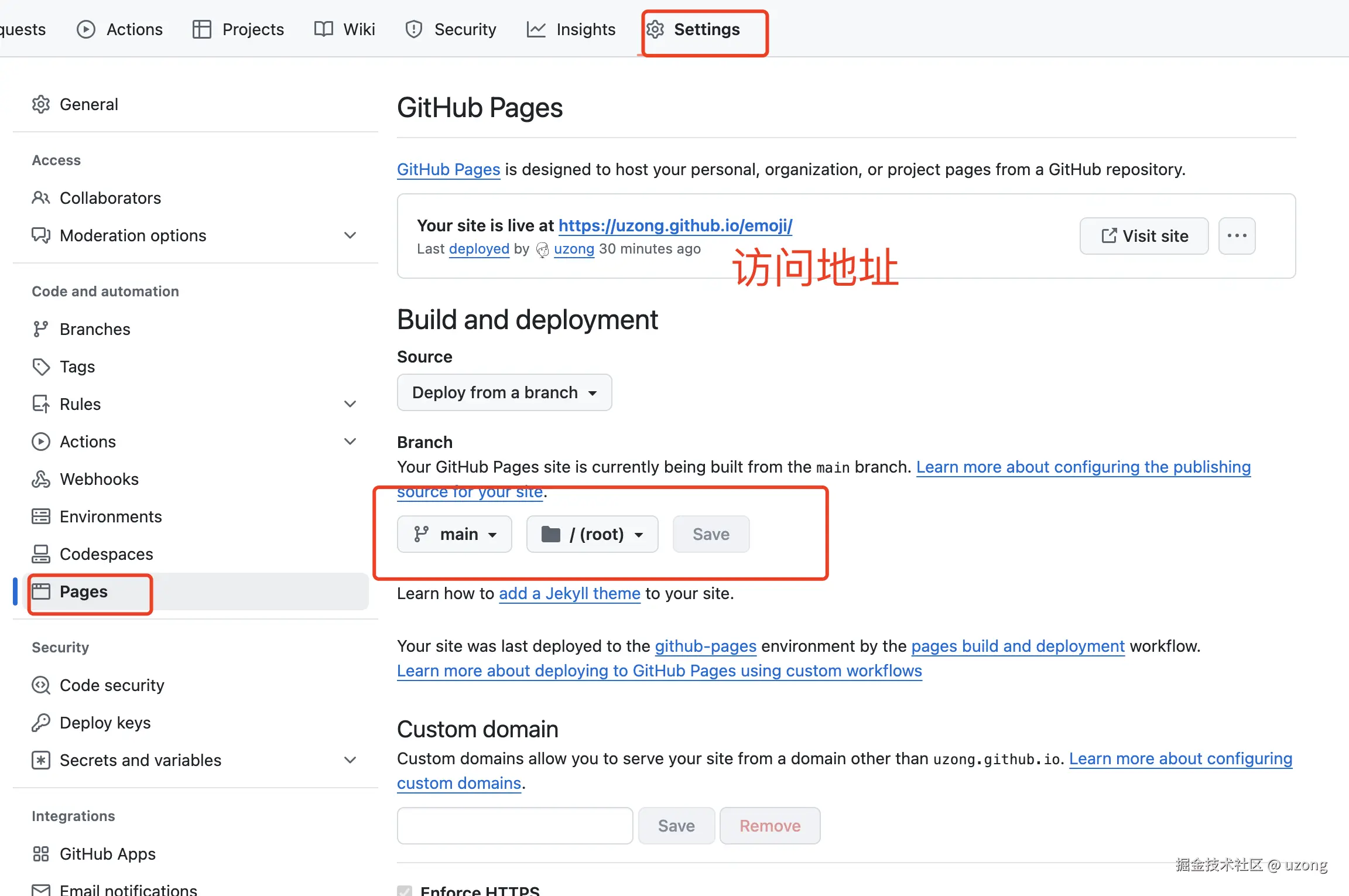 - 设置 Pages