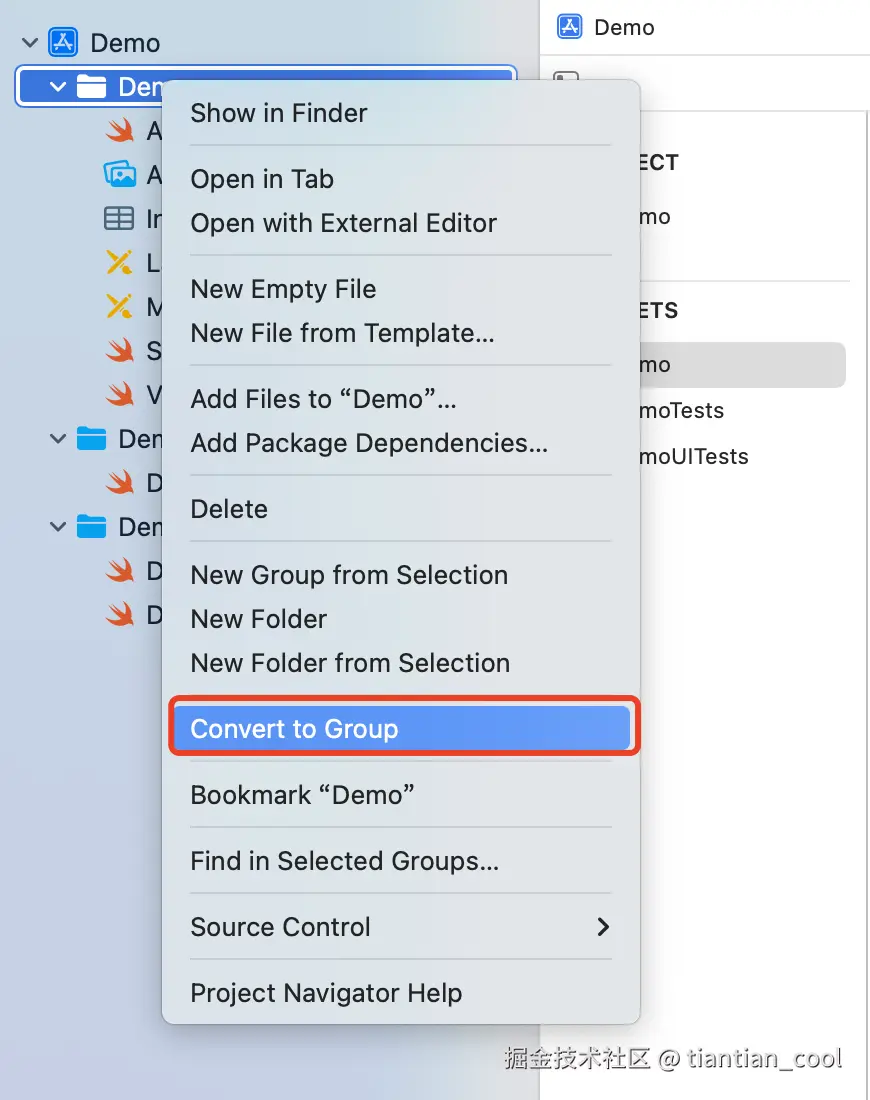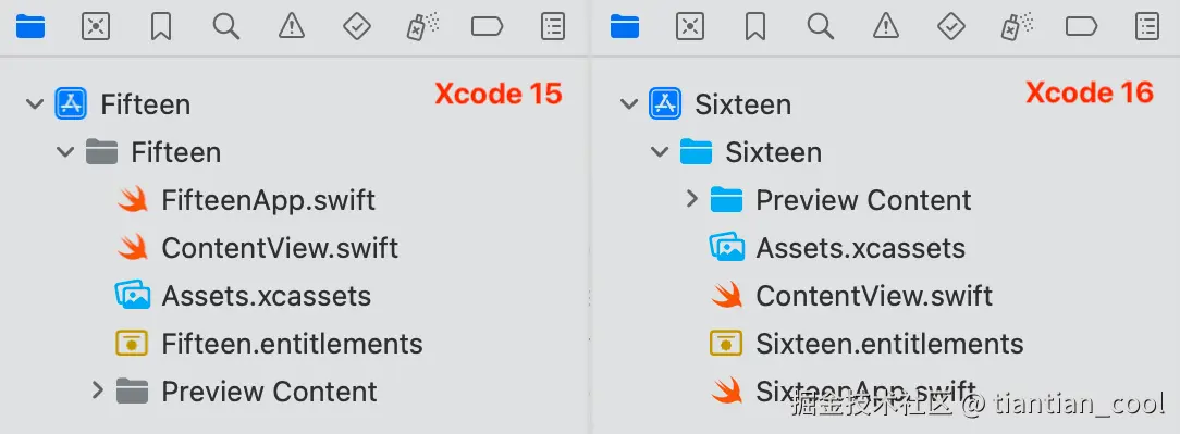 Xcode 16 文件 Folders & Groups tiantian_cool 2025-01-15 1,069 阅读1分钟 在 Xcode 16 中,项目文件和文件夹在项目导航器中的排列方式不同。以前的组现在变成了文件夹 乍一看,有两个区别:文件和文件夹的顺序以及文件夹图标的颜色。一个不太明显的区别是,在 Xcode 15 中,我可以拖动文件,Xcode 16 中Folders不可以拖动文件 如果我们想变成Groups文件夹我们需要这样操作 这样我们的文件件全部都是Group文件了注意的是Group文件提交git 合并有可能导致代码文件冲突