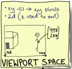 这样你就能得到与浏览器实际像素对应的 (x, y)。这在制作 3D 中的 2D label、 UI 、点击拾取等功能时非常常用。