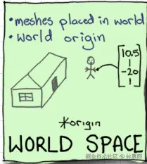 - 用途:用来表示场景中所有物体在整个世界中的位置和方向。