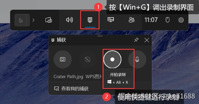 Win10录制屏幕快捷键1:Win+G