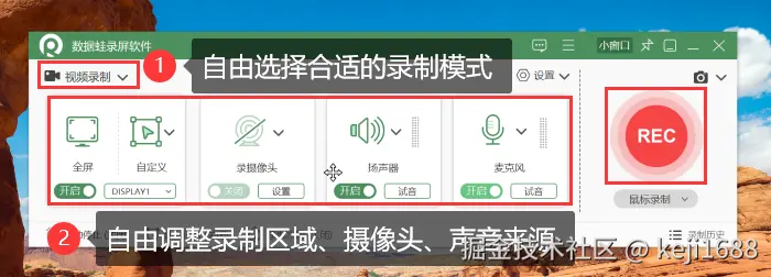 除了系统内置的录屏功能外,专业的录屏软件如数据 蛙录屏软件,为我们提供了更多录制可能。数据 蛙录屏软件支持整个屏幕、某个应用窗口或自定义区域的录制,同时支持声音录制和快捷键操作等功能。