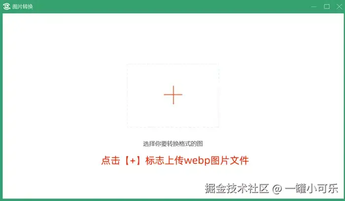 第二步:点击【+】标志,上传webp图片文件,或者直接从文件夹中拖拽webp文件上传。