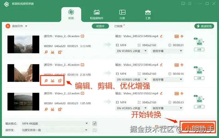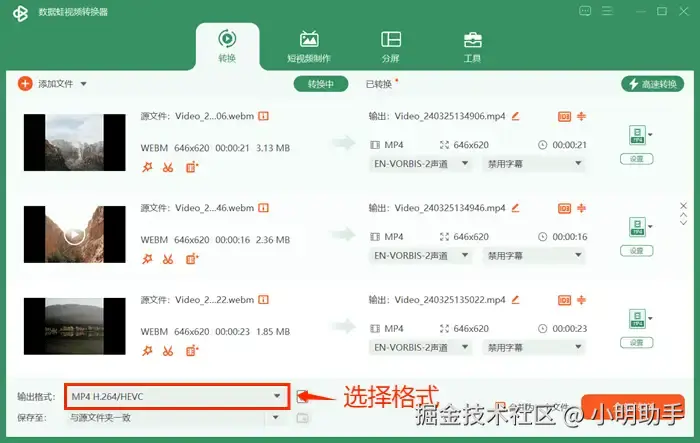 小编要介绍的第二个转换方法是:使用数据 蛙视频转换器这款高效实用的工具。数据 蛙视频转换器支持多种视频格式的转换,包括webm转换mp4。它具备高效稳定的转换速度、简洁易用的操作界面以及出色的转换质量。无论是处理单个文件还是批量转换,数据 蛙视频转换器都能轻松完成,让您快速获得所需的MP4格式视频。下面,让我们来看一下这款优秀视频转换软件该怎么将webm转mp4格式吧。