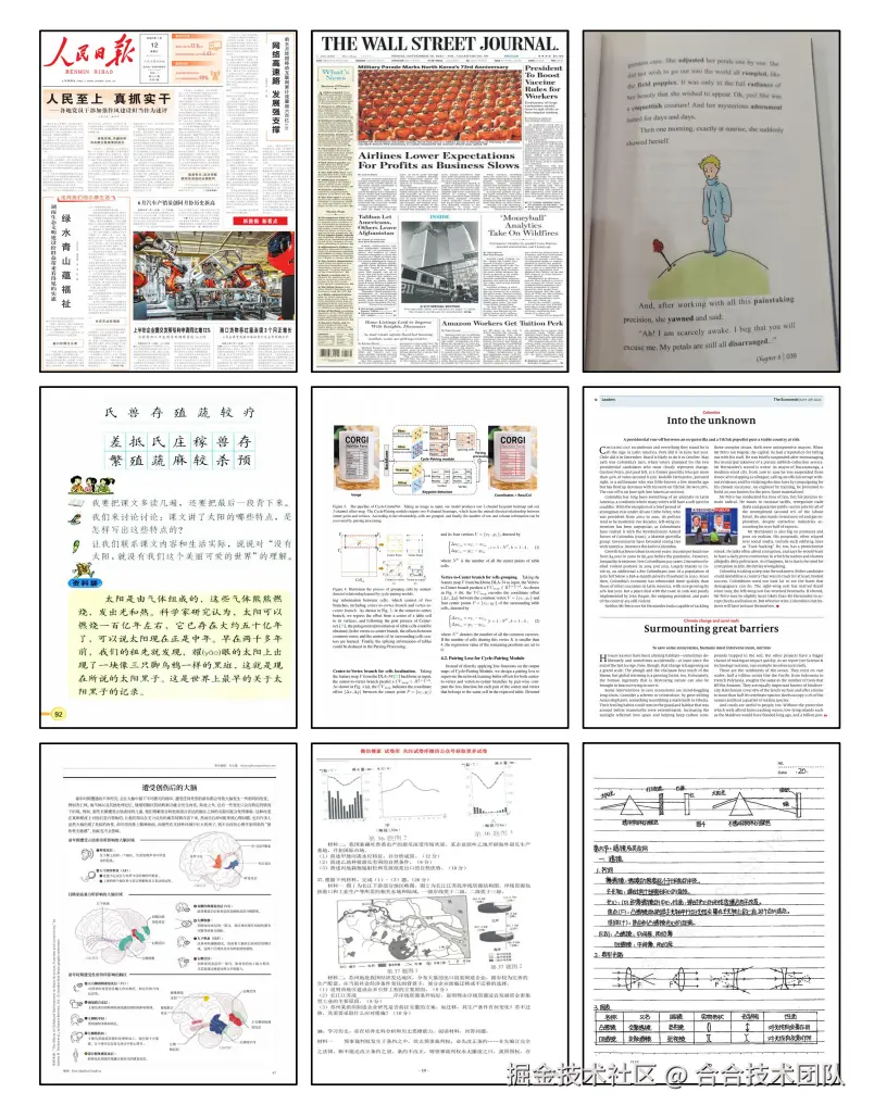 - 多类型:涵盖科学文章、教科书、书籍、试卷、杂志、报纸和笔记等七种文档类型。