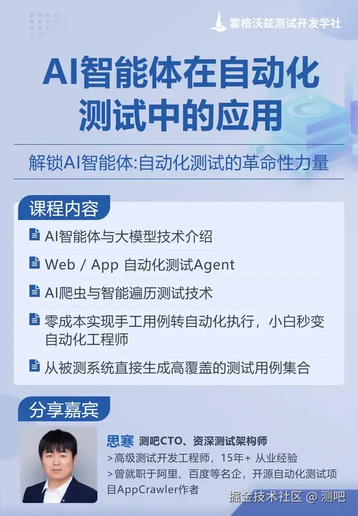 - 揭开AI智能体的神秘面纱,了解它们如何通过学习不断优化,成为自动化测试中的得力助手。