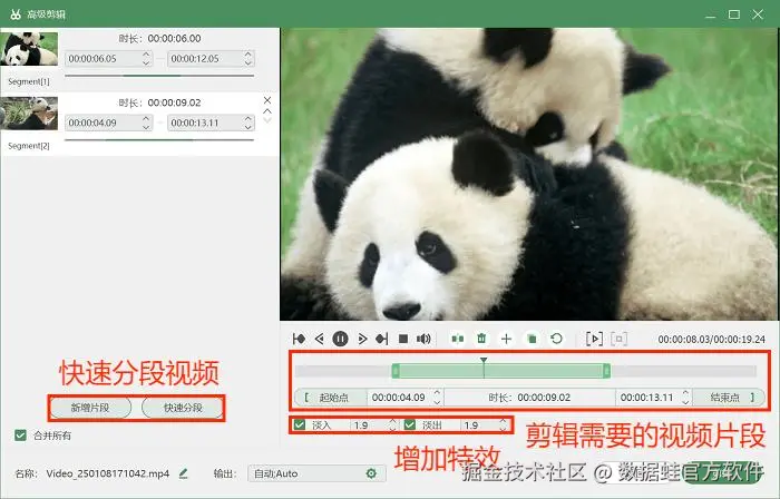 步骤3:录制好了之后就可以使用我们软件自带的编辑工具了,它叫做“高级剪辑”,就在预览页面的右下角。我们可以使用它对视频进行快速分段、增加特效等。