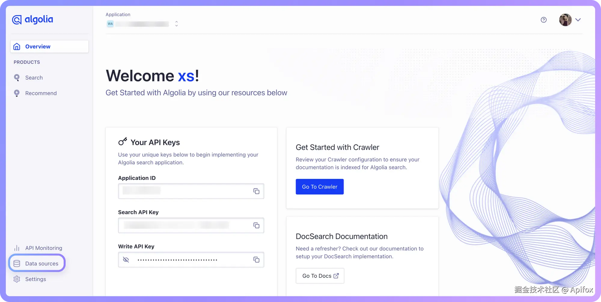 Write API Key 是 Algolia 用于更新索引的密钥,需要单独获取。要找到免费的 Algolia DocSearch 计划中的 Write API Key,你可以参考以下图文步骤获取。