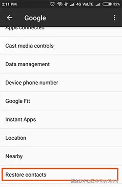 - 点击“恢复联系人”以从Google备份中恢复安卓联系人。