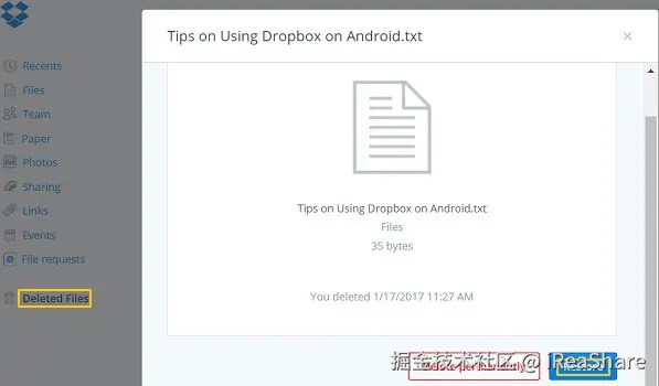 第四部分:使用Dropbox从安卓手机内部存储恢复数据