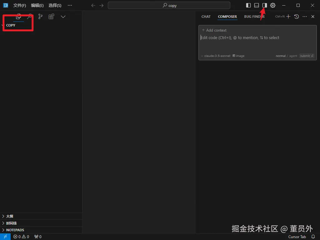 还是不能复制,不起作用,现在我们把问题向cursor描述一下让它修改下代码