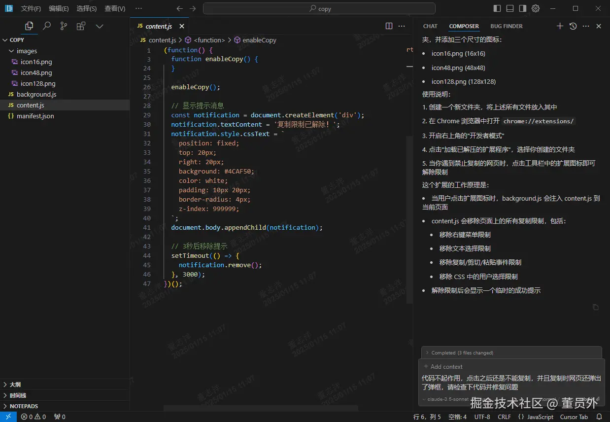 并且它还说:这些修改应该能解决大多数网站的复制限制问题。如果你发现某个特定网站仍然有问题,请告诉我具体是哪个网站,我可以针对性地提供解决方案。
