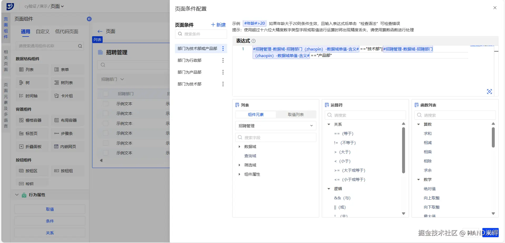 如果产品部和技术部都需要招聘技术顾问,那么我们需要再创建选项的条件:部门为技术部或产品部。