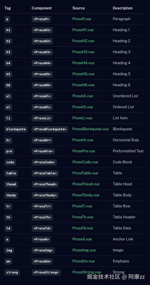 不过不建议在这里配置颜色相关的,因为提供了通过 prose-xxx 的形式灵活控制样式时,在这里在写一遍自定义的样式会难以覆盖,可以在这里设置一些间距类的样式。