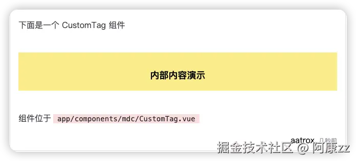 这个组件是为了替代 Vue 中的 slot 组件,针对 MDC 做了特殊处理,使用这个组件时你可以删除其包裹元素p,(使用 slot 时会默认渲染一个 p 标签包裹文字内容)