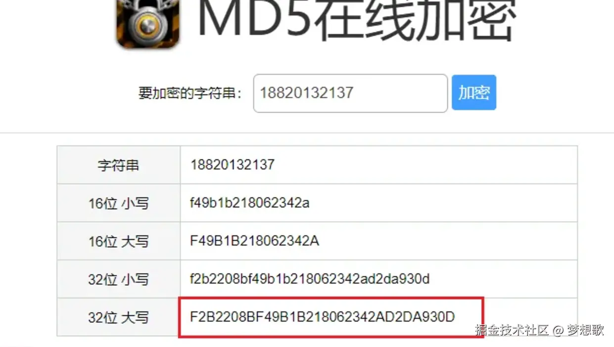 假设我要查询 18820132137 这个手机号的日志,可以通过 MD5 在线加密工具得到 MD5 值。
