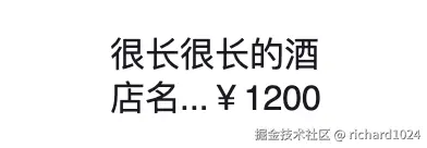 前端页面的典型场景:有限空间内展示酒店名字+价格,价格更为重要,空间不足时需要省略掉过长的酒店名字,即实现 text ellipsis + suffix 的混排,而且要尽可能多的展示文本。