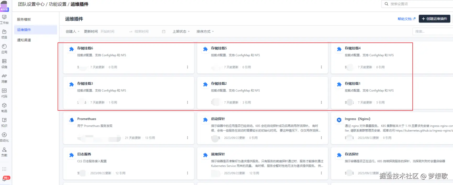 由于 CODING 目前没有支持存储配置,我们这边通过运维插件实现 ConfigMap 和 NFS 挂载,在应用管理,目前不支持重复引用相同的运维插件,否则会有问题。因此,我们有些插件通过数字区分。