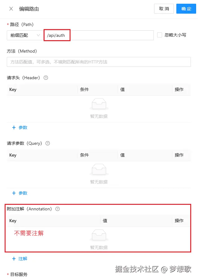假设请求入口为 /api/auth,参考下图,配置为路由A。