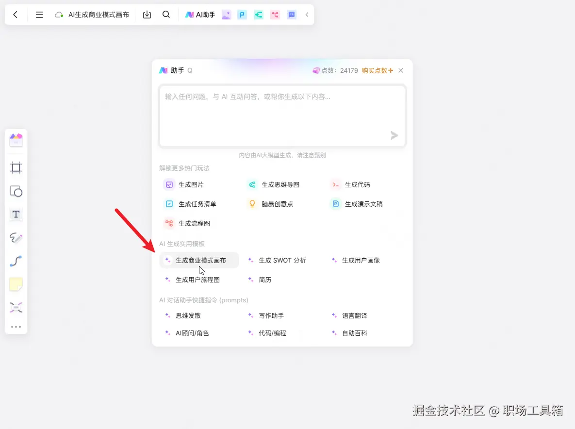 在众多绘图工具中,boardmix AI凭借其强大的功能和用户友好的界面,成为了制作商业模式画布的理想选择。如果你想使用boardmix AI一键生成商业模式画布,可跟随下面的步骤进行操作——