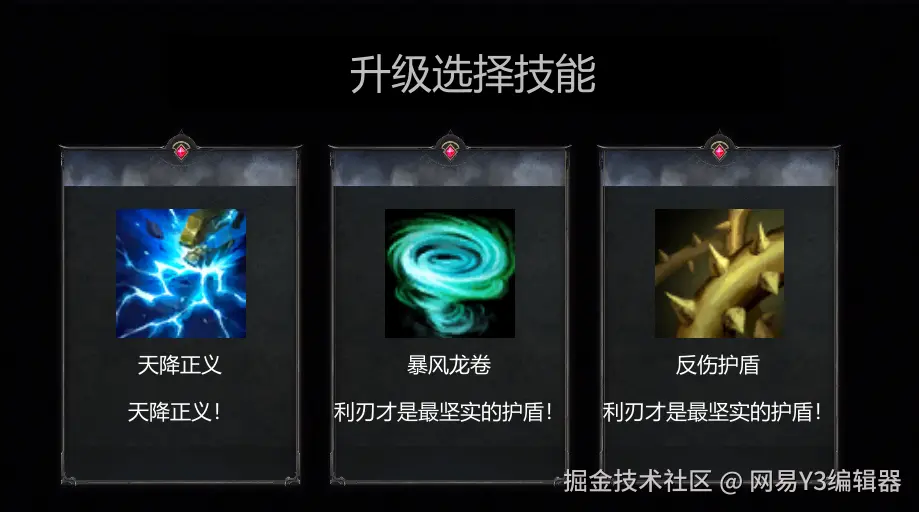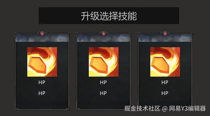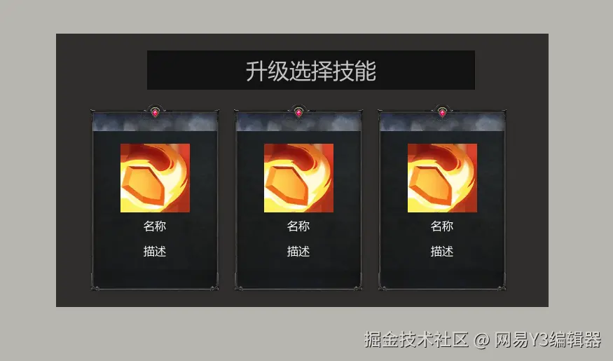 接下来,我们通过实战对界面各类型加以理解,一起制作类幸存者游戏中常见的【技能选择界面】