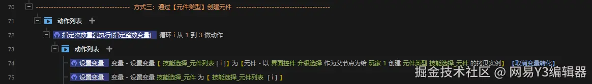 我们可以在触发器中用【元件类型】变量获取【界面编辑器】中用户制作的【自定义元件】,可以通过ECA【元件-创建元件】传入参数【元件类型】创建对应的【元件】